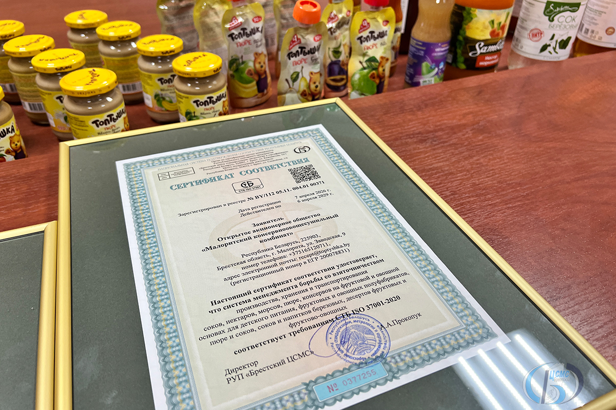 Отметим, что у ОАО «Малоритский консервноовощесушильный комбинат» уже сертифицированы 3 системы менеджмента в Брестском ЦСМС: